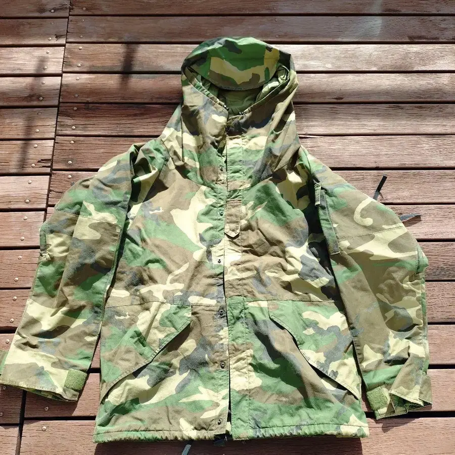 빈티지 카모플라쥬 밀리터리 후드 부착 자켓
