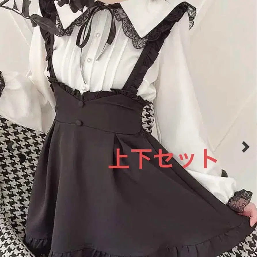 [ 상하의 세트 ] MARS 버튼 플레어 스커트 블라우스 양산형
