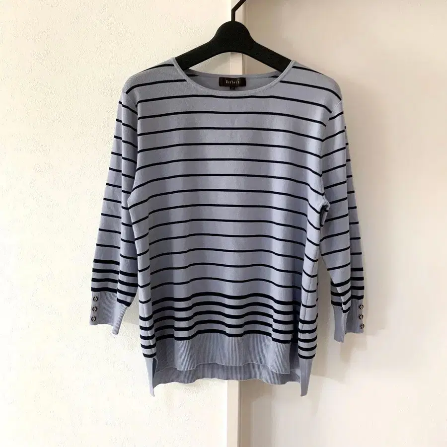 소매의 골드 버튼도 포인트가 되는 귀여운 상의입니다.