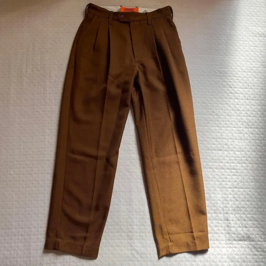 자동 번역되었어요. 원문보기브라운 플리츠 슬랙스, 지퍼 플라이 사양으로 스타일리시합니다.