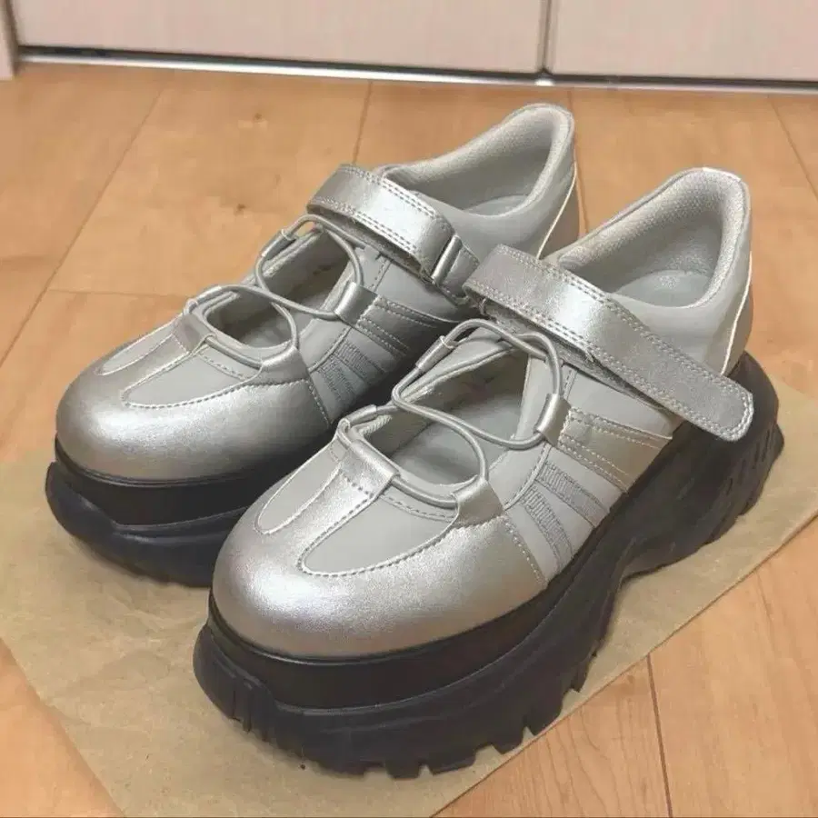 Heather 레이스업 플랫 스니커즈 Lsize 실버