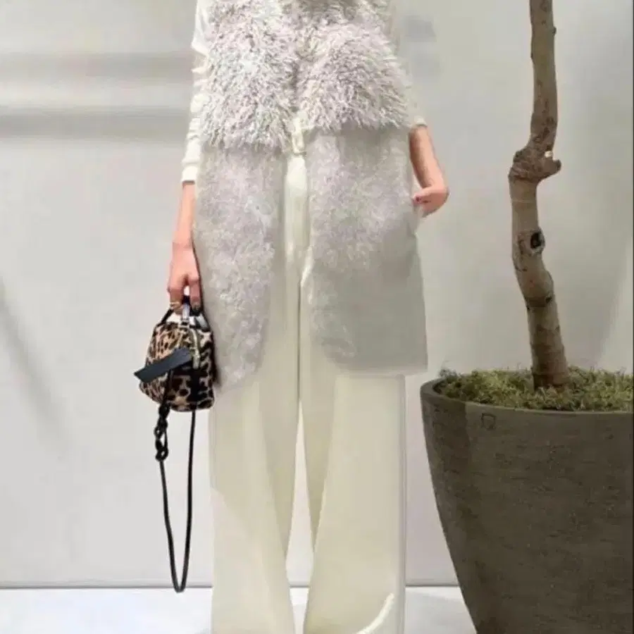 알아바일 인조 모피 콤비 니트 베스트 그레이