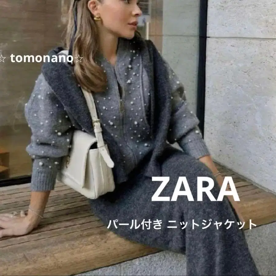 새상품급 ZARA 펄 장식 니트 자켓 그레이 사이즈 L