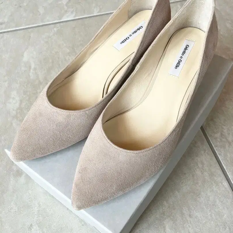 ODETTE E ODILE 베이지 스웨이드 낮은 힐 펌프스 24cm