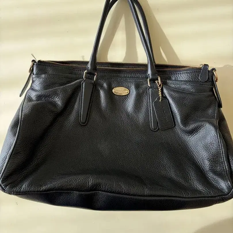 블랙 가죽 핸드백 지퍼 포함
