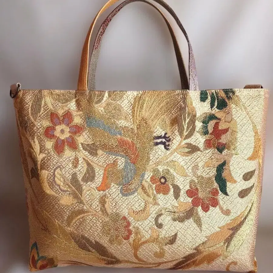 순수 실크 중고 후쿠로 오비 A4 가로형 토트백
