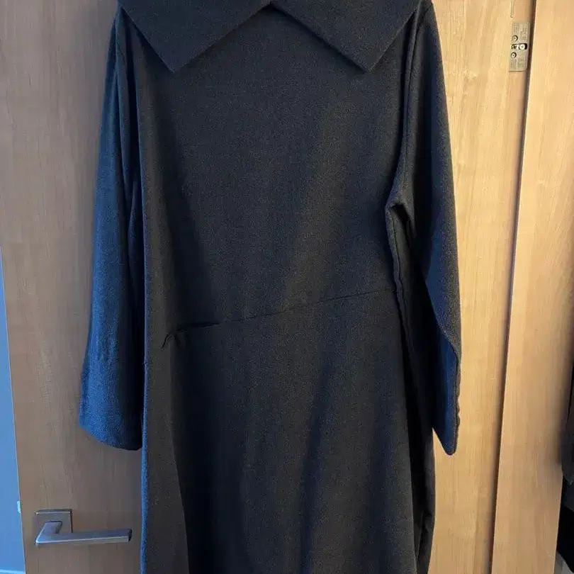 그레이 색상의 큰 옷깃이 달린 무릎 기장 원피스 M~L