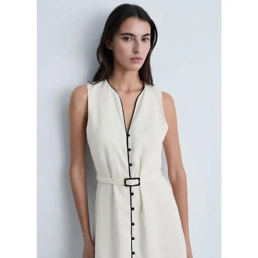 MANGO 린넨 롱 원피스 화이트