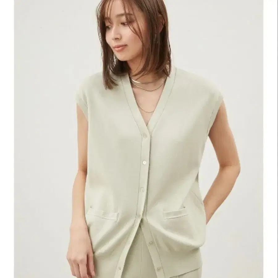 미라 오웬 라이트 그린 니트 베스트 버튼 포함 V넥