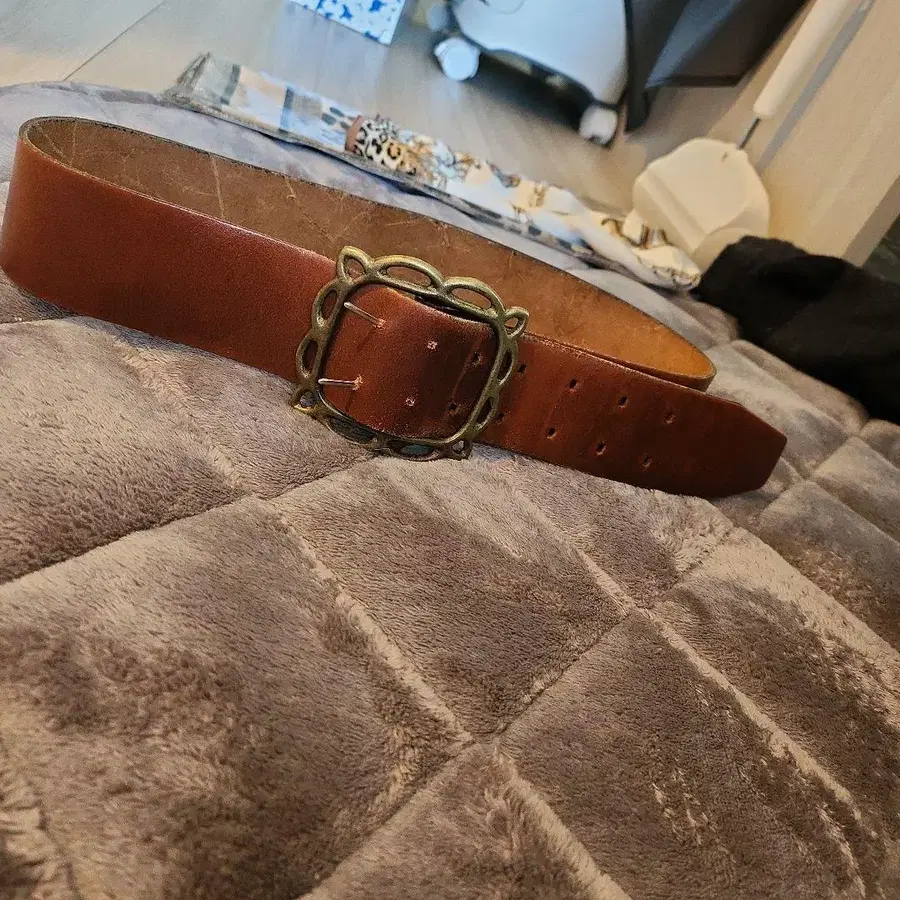 빈티지 브라운 가죽 벨트 장식 버클