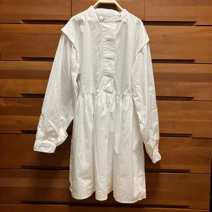 화이트 셔츠 원피스 보틀넥 밴드 카라