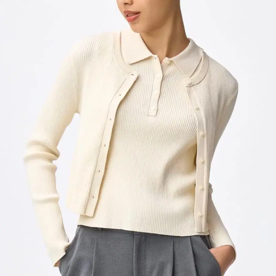 GU 2피스 리브 니트 피케 셔츠 L 내추럴