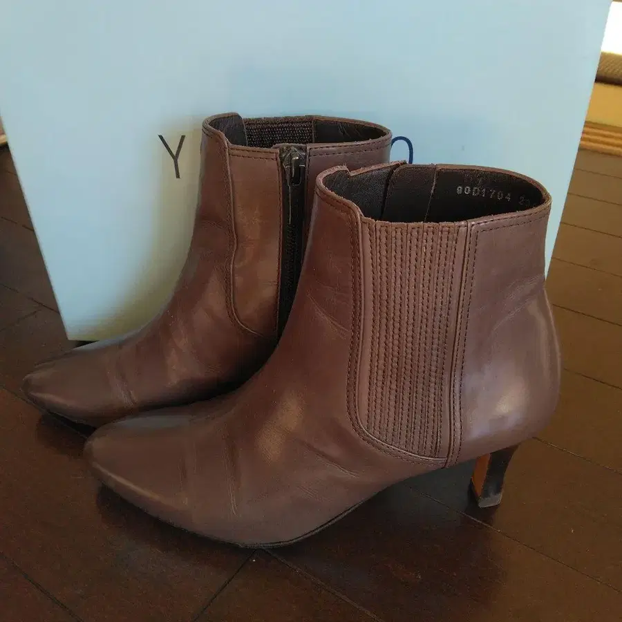 YOSHITO 브라운 사이드 고어 부츠 중간 힐