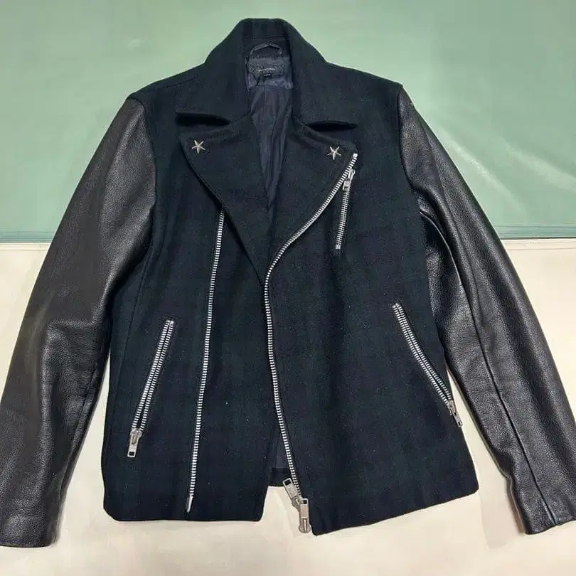NANO UNIVERSE 울 가죽 자켓 다크 네이비