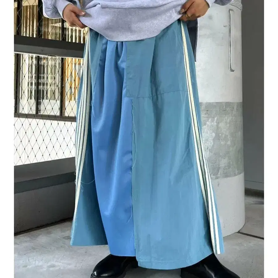 [ etsinta/에신타 ] 리메이크 저리 볼륨 스커트 색스 블루