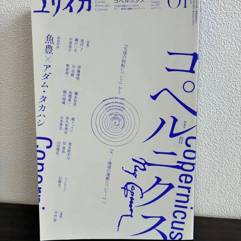 코페르니쿠스 특집이 실린 550페이지 분량의 과학 잡지. - 타이틀: 유리카 2023년 01월호 코페르니쿠스 - 출판사: 청도사 - ISBN: 978-4-7917-1231-0 - 페이지 수: 550페이지 - 특집: 코페르니쿠스 - 내용: 과학사와 종교에 관한 특집 . 유리카 2023년 1월호 특집=코페르니쿠스 ― [ 천구의 회전에 대하여 ] 에서 [ 지.―지구의 운동에 대하여― ] 로 ― ❖ 특별 대담 창작자와 철학사 / 우오토 아담 타카하시 ❖ 혁명의 뒷이야기 코페르니쿠스는 무엇을 어떻게 전회했는가 / 타카하시 켄이치 코페르니쿠스는 [ 수학자 ] 인가? / 미우라 노부오 트리아데의 코스모스를 다시 짜다 ― 코페르니쿠스 혁명부터 스테노 혁명까지 / 야마다 토시히로 수리천문학과 자연철학 ― 코페르니쿠스 혁명의 지적 배경 / 지미 에임즈 코페르니쿠스와 천공 순례 / 전 타카키 ❖ 신앙과 지식 갈릴레오에서의 학지권역 ― 코페르니쿠스 문제를 둘러싸고 / 오누키 요시히사 코페르니쿠스를 읽는 조르다노 브루노 / 오카모토 겐타 육화하는 우주 ― [ 바르부르크의 천구 ] 에서 [ 철학자들의 천구 ] 로 / 아담 타카하시 마술과 기이한 것의 동원 ― 순나파 성신신학에서의 혼란스러운 천계 / 나카니시 유키 ❖ 이담집 태양 숭배와 태양 중심설 ― 전회는 ― [ 코페르니쿠스적 전회 ] 의 역사적 전개에 대하여 / 야마모토 타카마사 데이터 과학에서의 코페르니쿠스적 전회 ― 어리석은 자는 경험에서 배우고, 현명한 자는 구조에서 배운다 / 마루야마 요시히로 ❖ 그리고 [ 지.― 지구의 운동에 대하여― ] 로 [ 지.― 지구의 운동에 대하여― ] 를 둘러싼 팩트와 픽션 / 오누키 토시오 역사 창작과 허실의 별 열 / 나카니시 쿄코 드라마틱한 지동설과의 만남 / 타쿠와 리츠코 의지를 가진 선 ― [ 그리는 ] 것과 [ 맡기는 ] 것을 둘러싼 [ 지. ] 시론 / 타케우치 미호 ❖ 하늘의 글을 읽다 코페르니쿠스 이전/이후의 지식과 서적에 관한 북 가이드 / 이시바시 케이이치 ❖ 잊을 수 없는 사람들*15 옛 친구에 대한 슬픔 타키가와 타케노부 / 나카무라 미노루 ❖ 시 치자꽃 외 다섯 편 / 나카무라 미노루 ❖ 유리카의 신인 색 고르기 외 한 편 / 오가와 후유 카네이션 / 에다 츠바키 ❖ 내가 발견했다 국화 잎 / 마루야마 레이 외 방문해 주셔서 감사합니다.