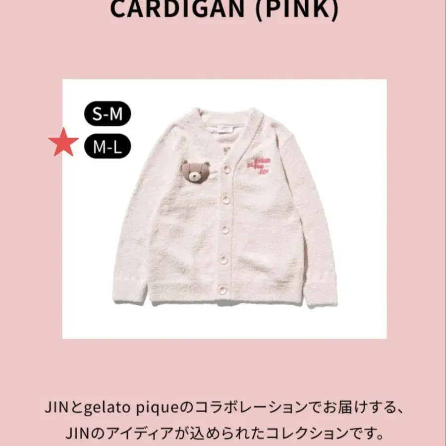 JIN gelato pique 가디건 핑크 [ M - L ]