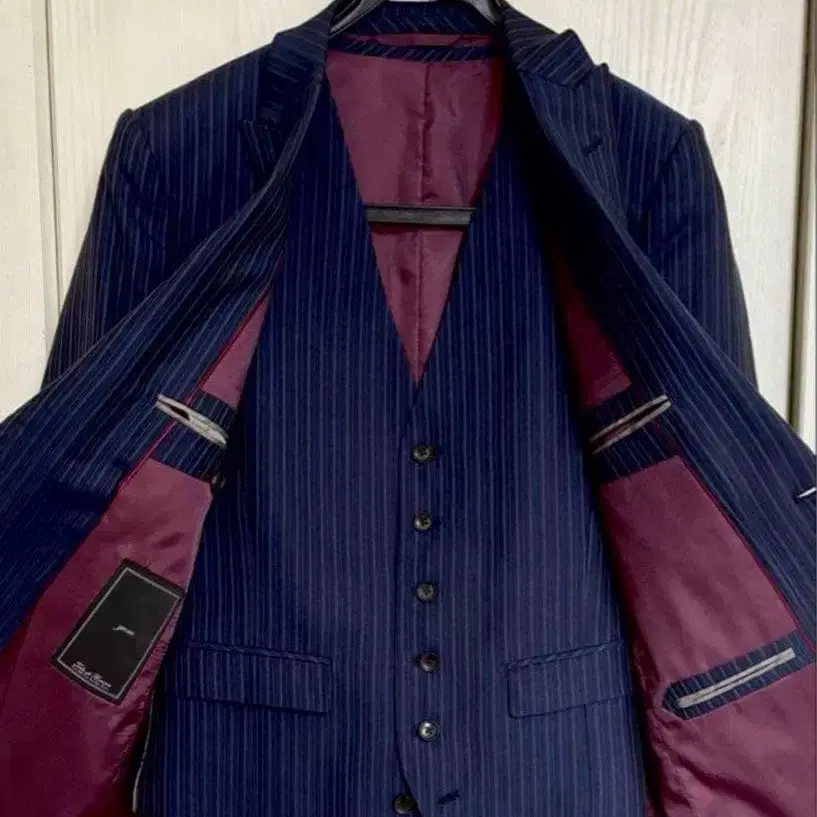 네이비 스트라이프 수트 베스트 세트