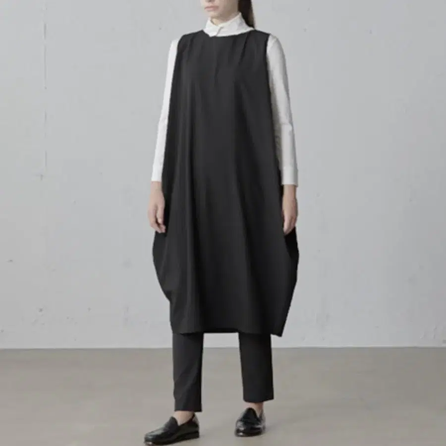 미즈이로 인드 슬리브리스 코쿤 원피스 맥시 길이 울 블랙 F