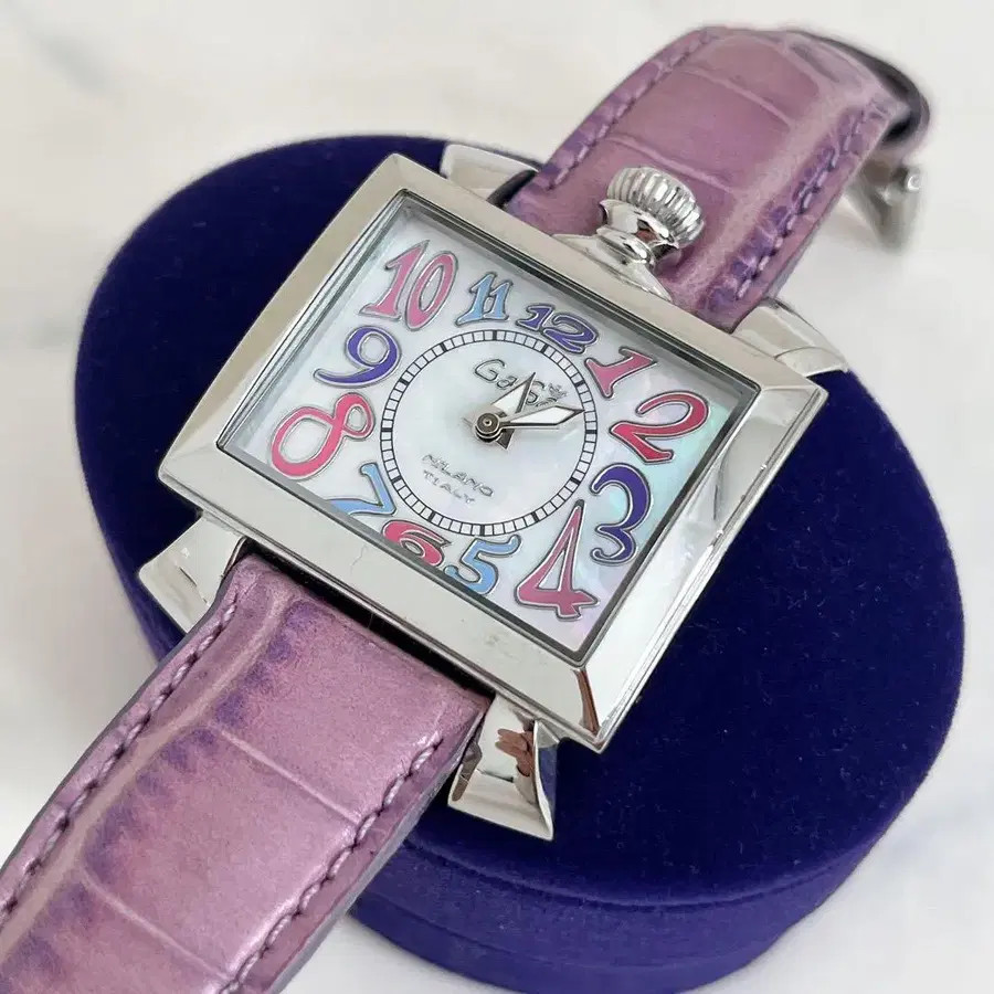 [ 상품 ] GaGa MILANO 가가 밀라노 나폴레옹 화이트 쉘 다이얼 여성용 손목시계 핑크 [ 상품 상태 ] 중고품이므로 약간의 흠집은 있지만, 시인성에 문제는 없으며, 계속 사용하실 수 있는 상품입니다! [ 부속품 ] 본체 조작 확인: OK 케이스 폭: 36mm(크라운 제외) 두께: 10.8mm 러그 폭: 20mm 팔 둘레: 130mm ~ 172mm (7단계 조절 가능) 다이얼 컬러: 화이트 쉘 벨트: 퍼플 핑크 무게: 59g 시리얼 넘버: 1307 ⚪︎ 사용하시는 모니터 환경이나 촬영 장소 이미지에 따라 실제 상품과 색감이 약간 다를 수 있습니다. ⚪︎ 상품은 발송 전에 검품하고 있지만, 누락 등의 가능성도 있으므로, 결함이 있다면 평가 전에 연락 부탁드립니다. ⚪︎ 이미지와 다르다, 사이즈가 맞지 않았다 등 고객님의 사정에 의한 취소는 받지 않으므로, 구매 전에 확인하신 후 구매 부탁드립니다.