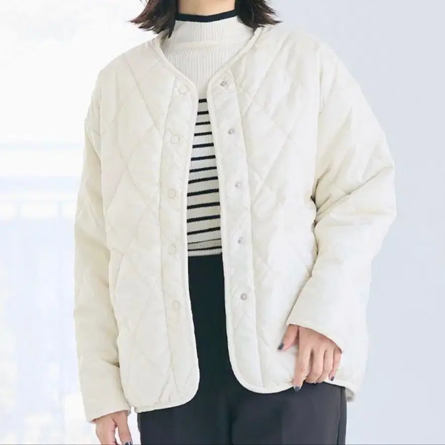 coca 리버서블 퀼팅 블루종 M 아이보리