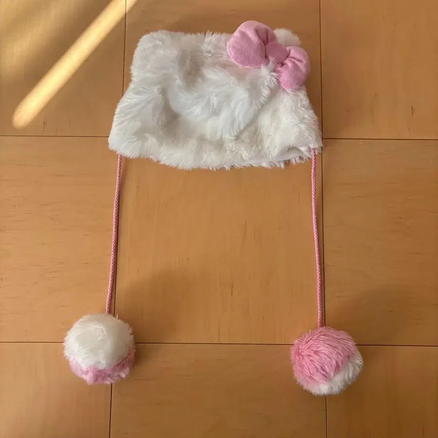 USJ 퍼 모자 헬로키티 화이트 핑크 폼폼 포함