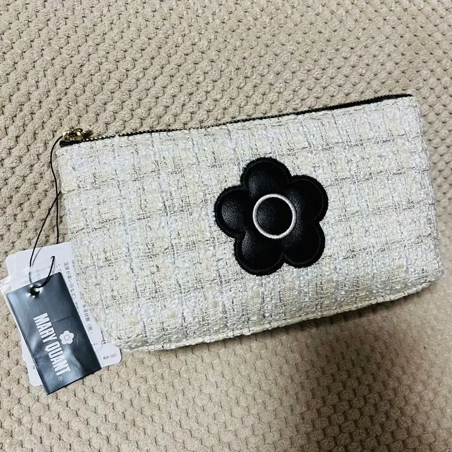 마리콴트 패딩 데이지 트위드 보트형 펜 케이스 (아이보리)