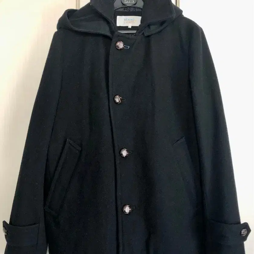 블랙 후드 부착 울 코트