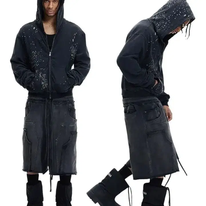 G.E.E.K RHINESTONE DAMAGED ZIPPED HOODIE
