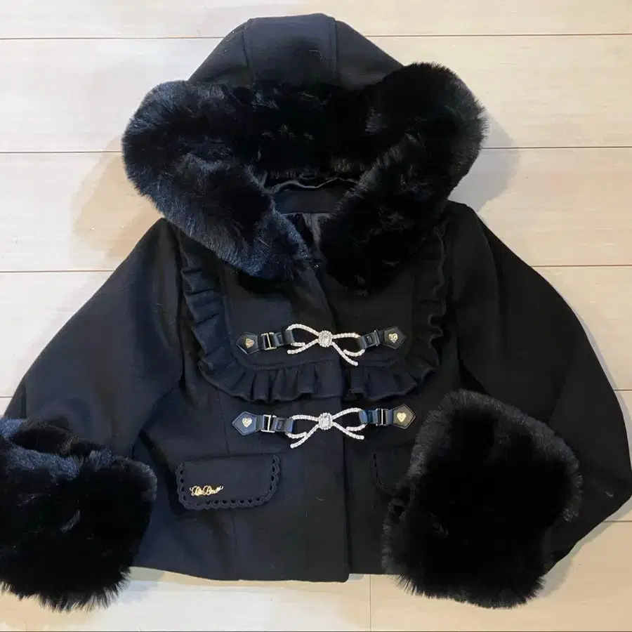 LIZLISA 디자인 비쥬 리본 포함 숏코트 후드 코트 블랙