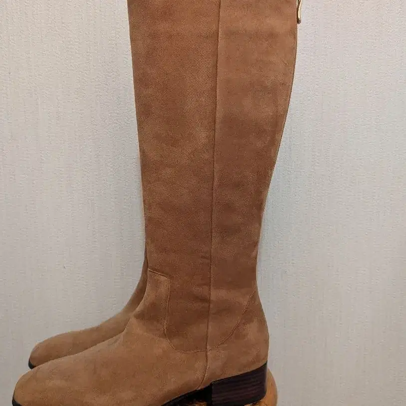 베이지 스웨이드 롱 부츠 지퍼 포함