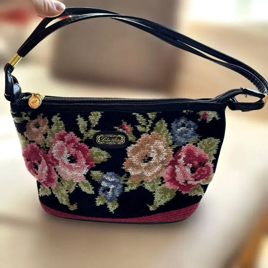 미사용 새상품 레이크알스터 Lake Alster 꽃무늬 자수 블랙 핸드백