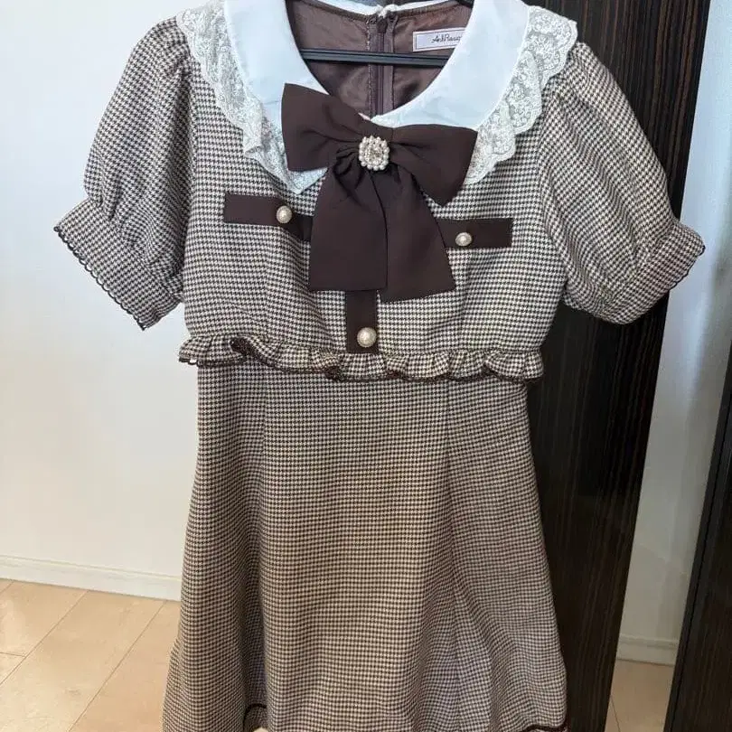 체크 무늬 반팔 미니 원피스