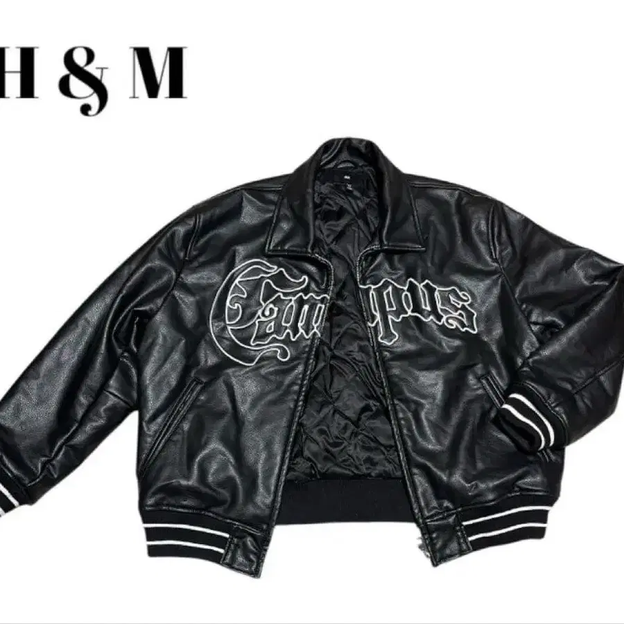 H&M 인조 가죽 바시티 자켓 campus 블랙 L