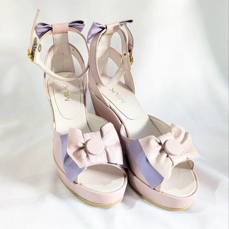 [ 미사용 새상품 ] MILK 리본 포함 웨지힐 샌들