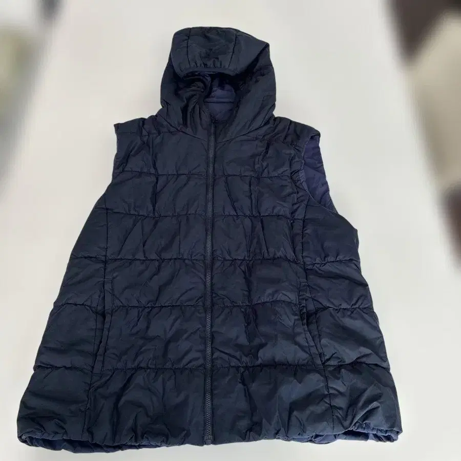 네이비 후드 부착 다운 자켓 베스트