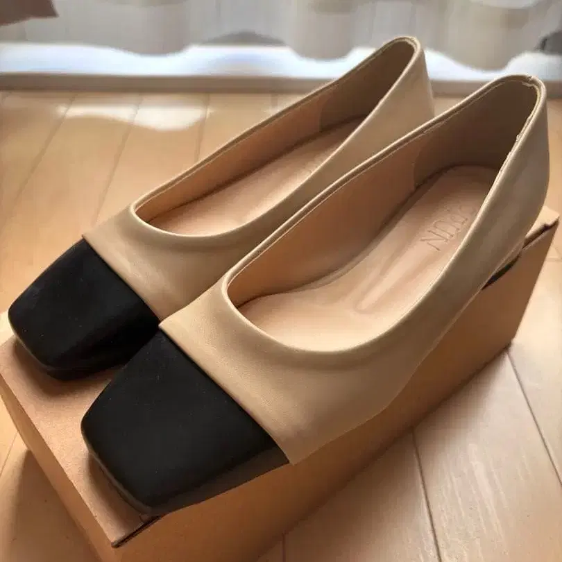[새상품] SAPPUN 베이지 블랙 바이컬러 플랫슈즈