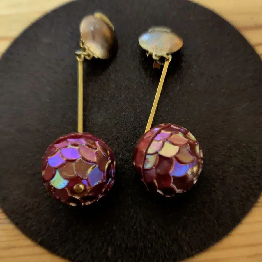 자동 번역되었어요. 원문보기빨간색 스팽글 느낌의 교수형 귀찌, 메탈과 플라스틱 소재.