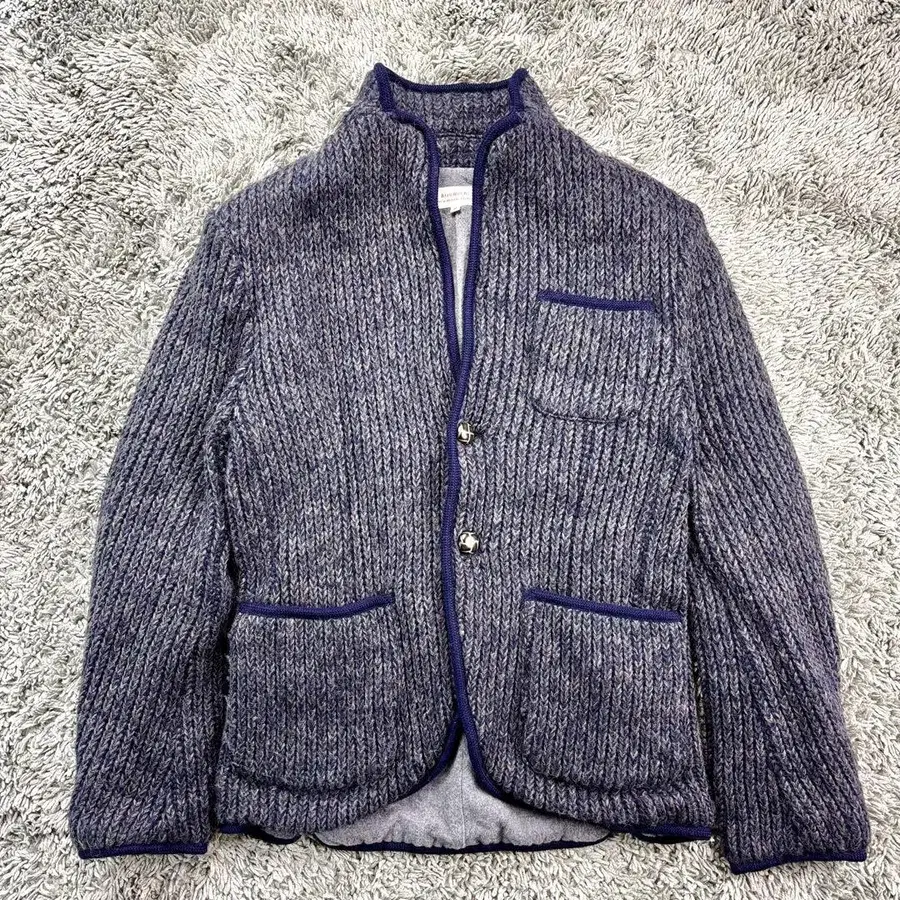 히로미치 나카노 자켓 싸개 단추 울 네이비 가디건 호두
