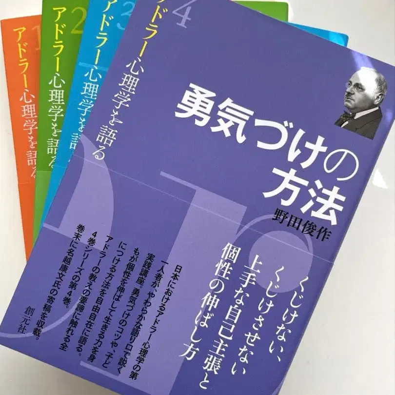 아들러 심리학을 말하다 시리즈 전 4권 / 노다 슌사쿠 저 아들러 심리학을 말하다 1: 성격은 바꿀 수 있다 정가: 1,540엔 아들러 심리학을 말하다 2: 그룹과 명상 정가: 1,540엔 아들러 심리학을 말하다 3: 열등감과 인간관계 정가: 1,540엔 아들러 심리학을 말하다 4: 용기 부여 방법 정가: 1,540엔 일본 아들러 심리학의 선구자이자 제1인자가 대화 형식으로 쉽게 저술한 실천 강좌. 바꿀 수 없는 성격이란 무엇인지 근본부터 풀어내고, 자신을 바꾸는 방법을 구체적인 예를 들면서 아들러 심리학의 궁극적인 목표인 [공동체 감각]에 대해 알기 쉽게 해설해 나간다. 친근하고 자유자재한 화법을 통해 아들러의 가르침을 실천 지도하며 많은 후계자들에게 전해온 진수를 담은 전 4권입니다. ※ 한 번 읽고 개인 서가에 보관했던 중고 도서입니다. 이해가 되시는 분의 구매를 부탁드립니다. ※ 원하시면 1권만 1,200엔 (세금 포함) 배송비 당사 부담으로 양도해 드립니다. 1권 (또는 1권과 2권 등)을 원하시는 분은 댓글란에 연락 주세요. 방문해 주셔서 감사합니다. 잘 부탁드립니다.