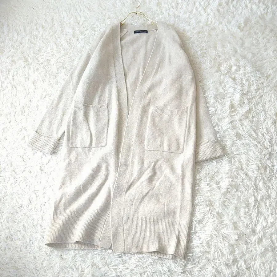 ☑ 상품: 베이지 색상의 오픈 프론트 가디건, 포켓이 있어 사용하기 편리합니다.