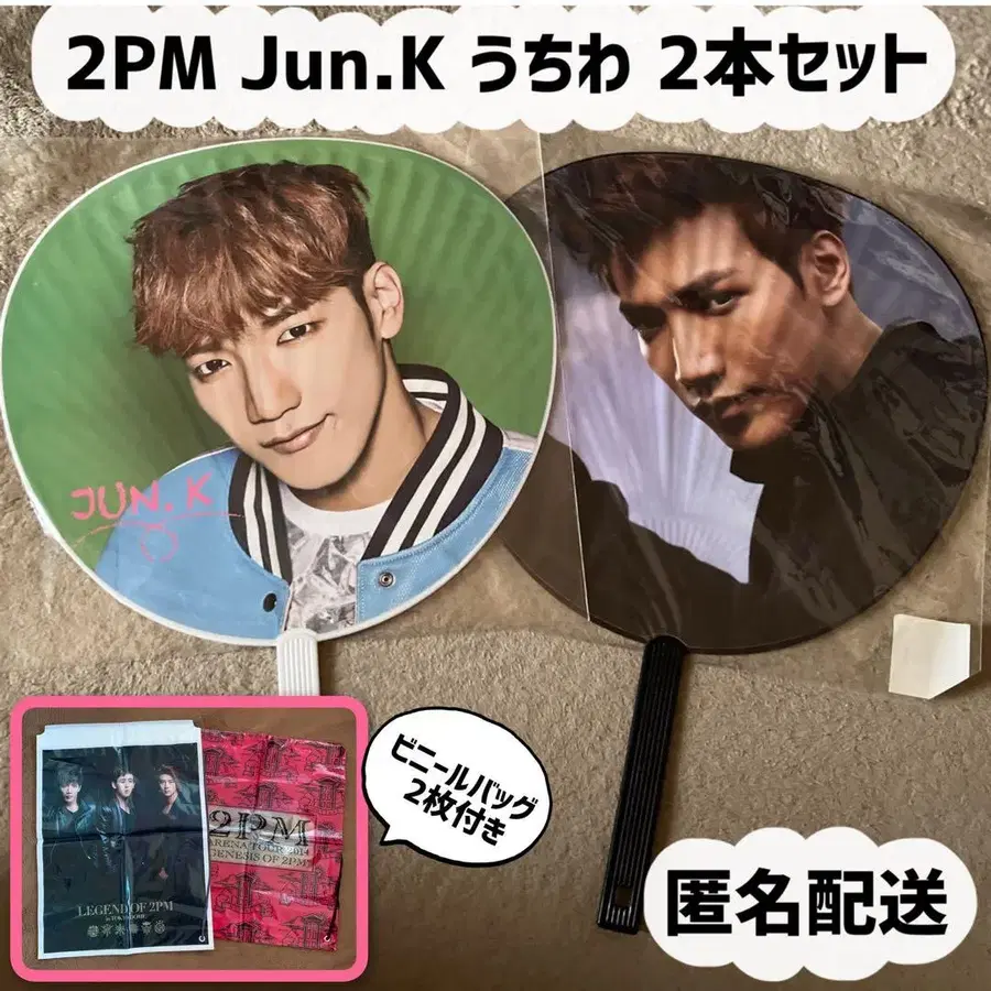 2PM 공식 굿즈 Jun.K 부채 2장 세트 (비닐 백 2장 포함)