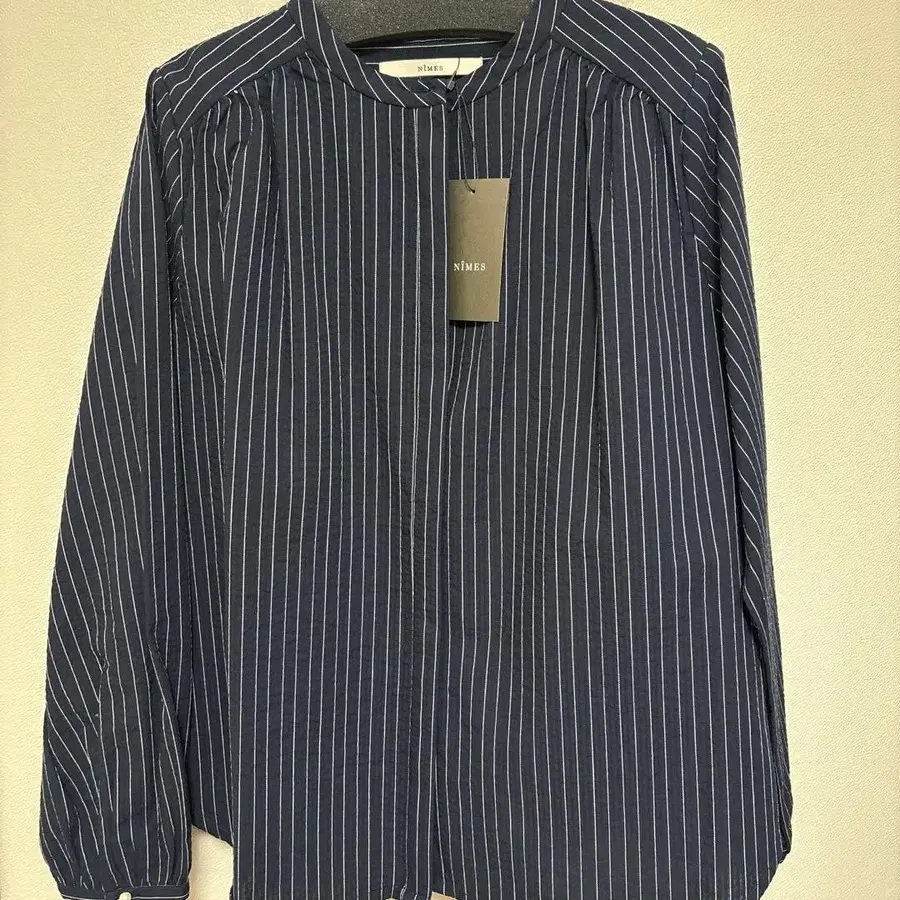 마린프랑세즈 스트라이프 패턴 스탠드 카라 블라우스