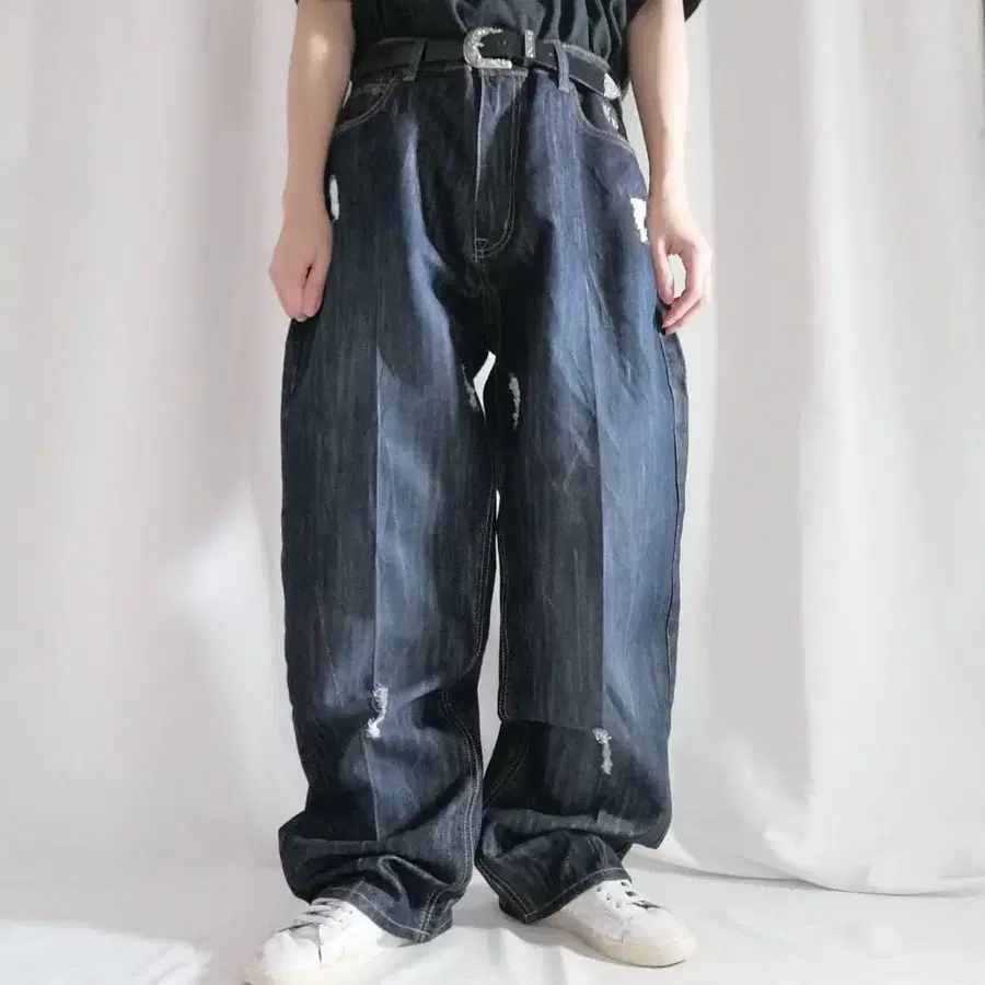 초레어 36인치 팻팜 배기 데님 자수 로고 다크 네이비 Y2K B계