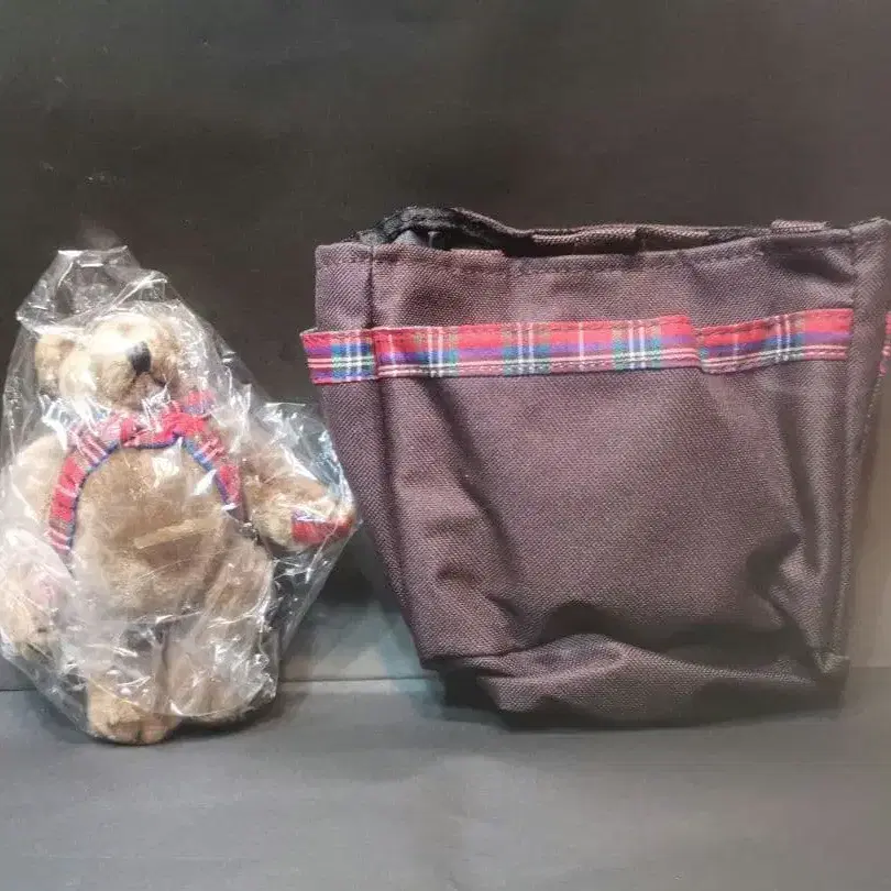 곰 봉제 인형과 수납 백 세트 빈티지