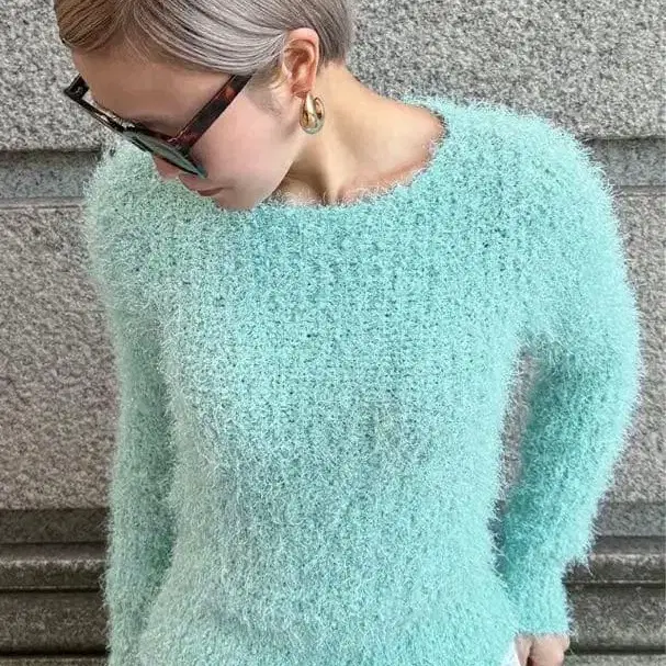 • emmi atelier V넥 알파카혼 샤기 니트 라이트 블루