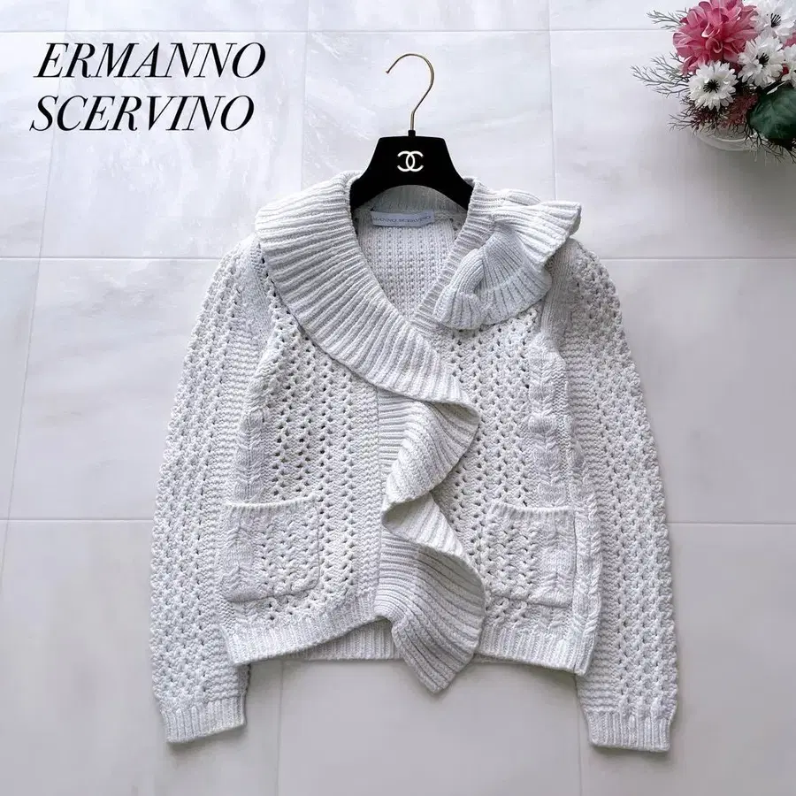 새상품급 레어 엘르만노 쉘비노 니트 가디건 프릴 칼라 손뜨개질