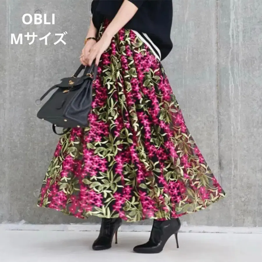 OBLI 오블리 꽃무늬 레이스 샤샤 스커트 롱 스커트 레드