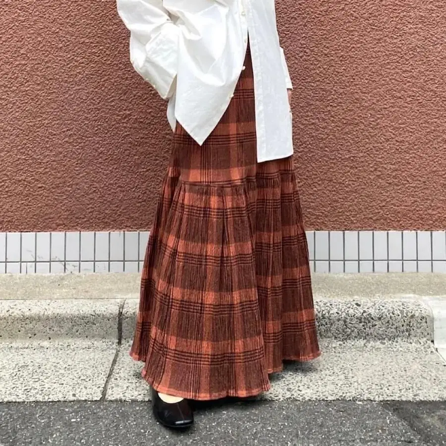 Ungrid 체크 볼륨 맥시 스커트 개더 스커트