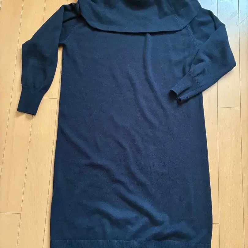 라운지 드레스 캐시미어 혼방 네이비 긴팔 니트 원피스